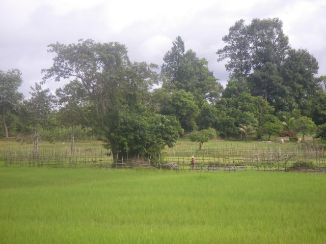 El autobus partió y durante varias horas compartimos viaje con las chicas y con el médico alemán. Fue un viaje divertido y ameno atravesando el increible paisaje camboyano, campos de arroz por doquier, agua omnipresente, una sucesión de casas humildes y modestas sujetas por troncos en su base y rodeadas por animales saltando por todas partes. Era evidente que Camboya era un país eminemente rural. Durante todo aquel tiempo no atravesamos ni un sólo nucleo urbano que pudiese ser considerado como ciudad o pueblo grande. La carretera estaba recien asfaltada y estaba en buenas condiciones. El médico nos comentó que la primera vez que vino no era más que un camino embarrado y que la carretera estaba llena de parches y baches.