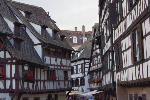 Numerosos edificios tanto religiosos como seculares constituyen el casco antiguo pero entre todos ellos destacan sobremanera los que conforman el distrito de la Petite France, testigo de excepción del carácter germano de la ciudad. Las casas con sus fachadas con madera en blanco y negro son junto con la catedral el principal objetivo de las cámaras de los turistas y visitantes y caminar entre sus canales y calles no deja de ser un bonito paseo.