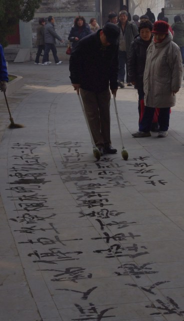 Paseando y remoloneando por los parques, es posible aún así descubrir algún momento auténtico y no es raro encontrar grupos de chinos practicando taichi a la sombra de alguna pagoda o algún caligrafo concentrado practicando la complicada escritura china con algún enorme pincel en las inmediaciones del lago.