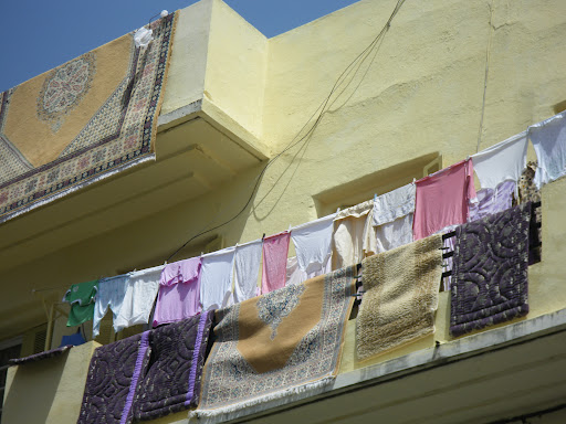 La Medina con su bazar es un intrincado laberinto de calles y puestos de fruta y ropa que discurre entre decrépitos edificios antiguos de evidente influencia española que aportan al conjunto un ambiente entre exótico y familiar, entre fotográfico y ruinoso.