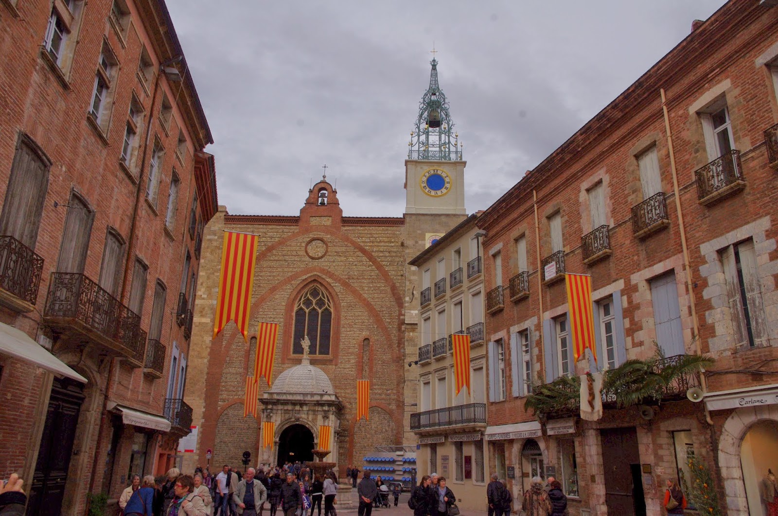 Perpignan tiene un bonito y animado casco histórico, no demasiado grande y bastante destartalado y decadente. Tiene un seductor aire entre canalla y mediterraneo (casi italiano, diría yo) con cierto ambiente de puerto sin serlo y su origen catalán se exhibe orgulloso en la bandera de la ciudad, izada en todas las esquinas, que luce ondeante las Barras Catalanas, simbolo heráldico de la Corona de Aragón.