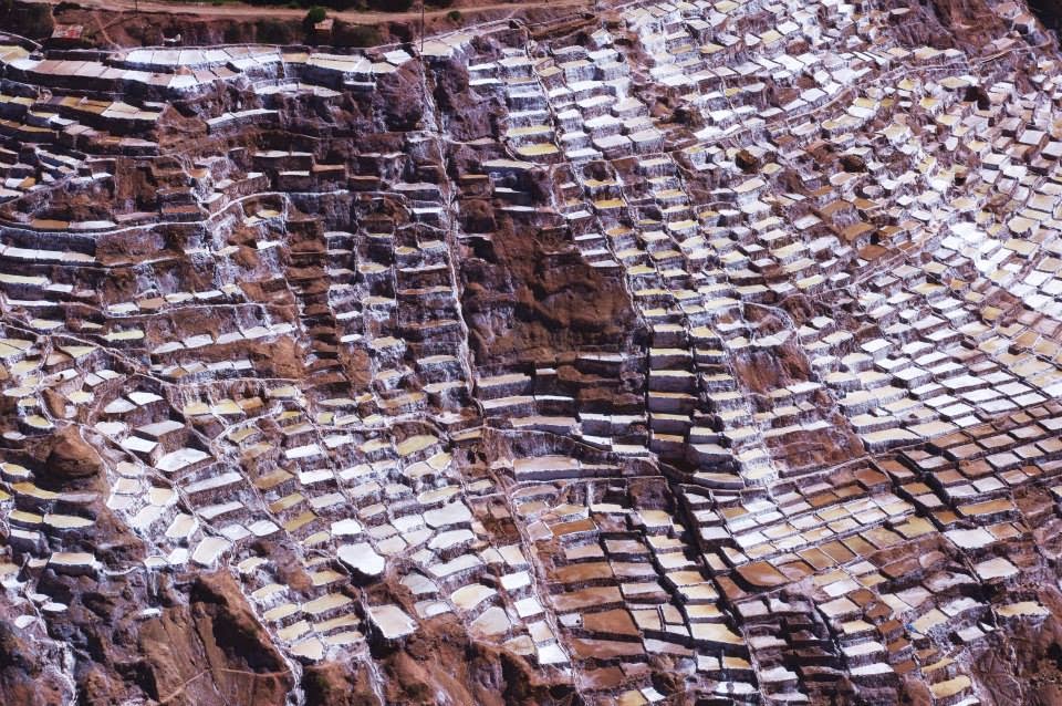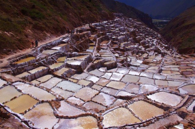 La realidad es que la obra humana y la naturaleza se combinan para conformar un paisaje casi extraterrestre, de leyenda, donde el verde de la vegetación contrasta con el blanco nuclear de la sal y los miles de tonos ocres de las casi 5000 pozas de agua termal que conforman la salina a lo largo y ancho de una extensión de 5 kilometros cuadrados.