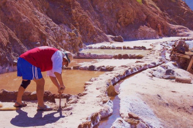 120 familias viven de la explotación de la sal (sal que se exporta al resto del país, las sales de Maras son bien conocidas en todo el Perú) y el trabajo todavía se realiza de una forma muy manual y tradicional.(Lo que viene siendo agachado rompiendose el lomo, vaya). Puedo llegar a imaginarme lo duro que puede suponer el trabajo de extracción de la sal en estas minas, que aunque hermosas no dejan de ser minas.