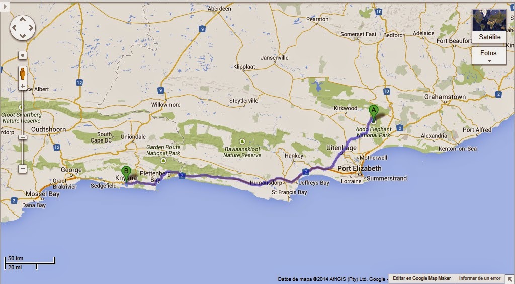 Desde Addo, siguiendo la costa, nos dirijimos a Knysna, elegante enclave costero en la turística Garden Route, carretera que constituye junto con Ciudad del Cabo el mayor reclamo turístico del país. Allí visitamos a la tía de St. y pudimos descansar y cuidar nuestro cuerpo y mente después de tantos kilometros de serpenteante carretera.