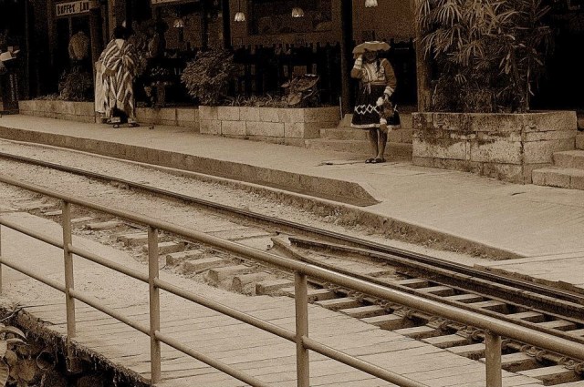Aún así, Aguas calientes a mi me pareció un lugar bastante curioso. Con todas las viviendas a medio hacer, con los hoteles construidos a toda velocidad y con malos materiales y toda la vida ordenada entorno a la vía férrea recorrida de vez en cuando por trenes escupiendo humo negro, Aguas calientes casi parece, sin pretenderlo yo creo, el típico escenario de una película de Oeste.