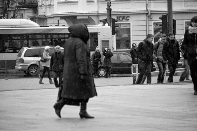 En la calle, los ciudadanos de Vilnius caminaban deprisa casi corriendo, con la cabeza gacha mirando al suelo, encogidos por el frío y parapetados en sus enormes y voluminosos abrigos, escondidos entre la lana de sus guantes, gorros y bufandas.