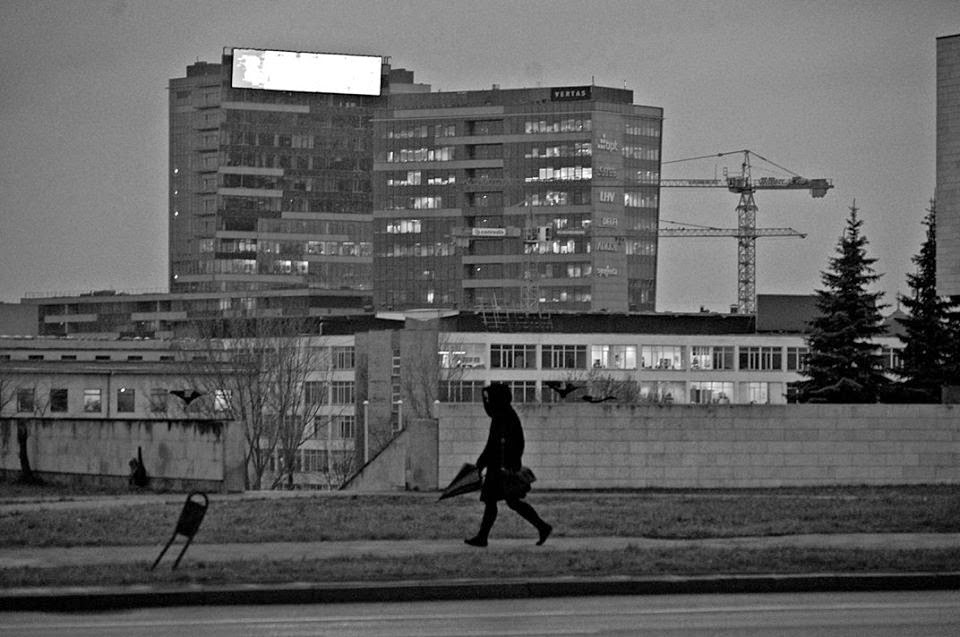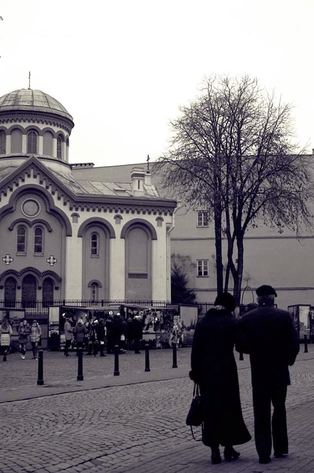 Tengo que reconocer que a mí Vilnius no me entusiasmó demasiado. No sé si como consecuencia de su convulsa historia o del rigor del invierno lituano y la falta de luz solar durante gran parte del año, que Vilnius es una ciudad de gesto sombrío y seco, funcional como las edificaciones de la época comunista de las afueras, ya visibles desde el avión cuando uno aterriza, y casi impávida como la expresión del rostro de sus habitantes, a los que parece que les cobran ya no por cada sonrisa o muestra de afecto al prójimo si no por cada expresión mínima que demuestre humanidad o emoción.