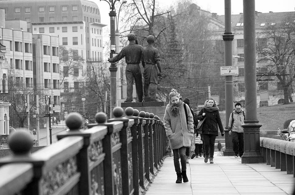 Desde mi hotel, el casco histórico de Vilnius estaba a unos pasos. Pero debido al mal tiempo, el camino siempre se me hacía interminable. Había que atravesar un puente, custodiado éste por unas solemnes estatuas de unos soldados de hazañas ya olvidadas, que permanecían estoicos resistiendo al viento y la nieve, observando el tráfico de la ciudad compuesto por tranvías, coches y viandantes.