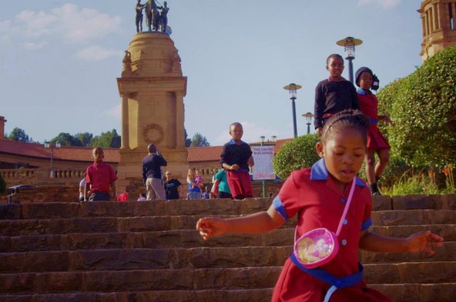 El parque estaba plagado de niños. Parecía ser día de excursiones escolares. Todos los niños eran negros y todos ellos iban enfundados, muy obedientes, en sus uniformes. La mayoría no debía de tener ni 10 años y todos hacían cola en fila india, esperando su turno para hacerse una foto bajo las alas protectoras del idolatrado Madiba.
