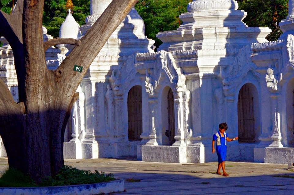 Paseamos un rato por su espacioso y silencioso interior y después de unos minutos regresamos al coche. Enrique, sin perder su buen humor, nos condujo a la Pagoda Kuthodaw, una de las más importantes de la ciudad desde el punto de vista religioso y es que, echaos a temblar, esta pagoda tiene el honor de poseer el libro más grande jamás escrito. En esta stupa, también construida durante el reinado de Mindon en el siglo XIX, hay 729 losas de mármol inscritas que constituyen los 15 libros del Tripitaka, el libro sagrado del budismo, para cuya edición y aprobación se convocó en Mandalay el quinto sínodo budista, durante el cual, un grupo de monjes leyeron el conjunto del libro para lo que necesitaron precitamente la friolera de seis meses!!!