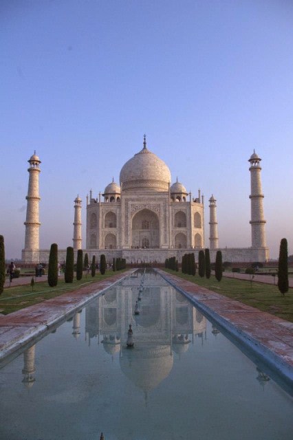 El motivo por el que nosotros al igual que aquel grupo de individuos habíamos sacrificado nuestras horas de sueño y descanso y nos habíamos plantado allí a horas intempestivas no era otro que el de contemplar el alba sobre una las siete grandes maravillas de mundo moderno: el bellísimo palacio Taj Mahal, imagen representativa de todo un país y quizás una de los edificios más hermosos y famosos de todo el planeta.