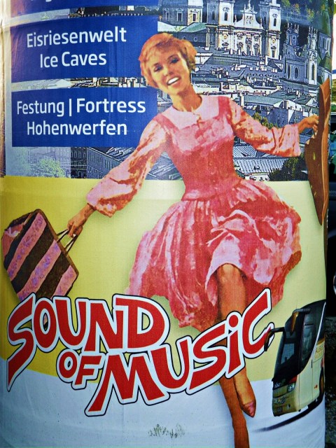 Pero bueno, no nos vamos a engañar, aún sin abandonar el tema de la música, uno de los motivos principales por los que mucha gente se desplaza a la ciudad, no es ni Mozart, ni Haydn: Salzburgo fue el escenario de la famosa película musical «Sonrisas y Lágrimas«, en inglés, «The Sound of Music«. (En Latinoamérica fue bautizada como «la Novicia Rebelde»). La archiconocida película fue rodada en 1965, dirigida por Robert Wise y protagonizada por Julie Andrews y Christopher Plummer. El film en tono de musical narra las aventuras y desventuras de la religiosa María que, enviada como institutriz a la mansión del viudo Von Trapp y sus siete hijos, acaba por enamorarse del susodicho Capitán Von Trapp, todo ésto con la Segunda Guerra Mundial, como telón de fondo.