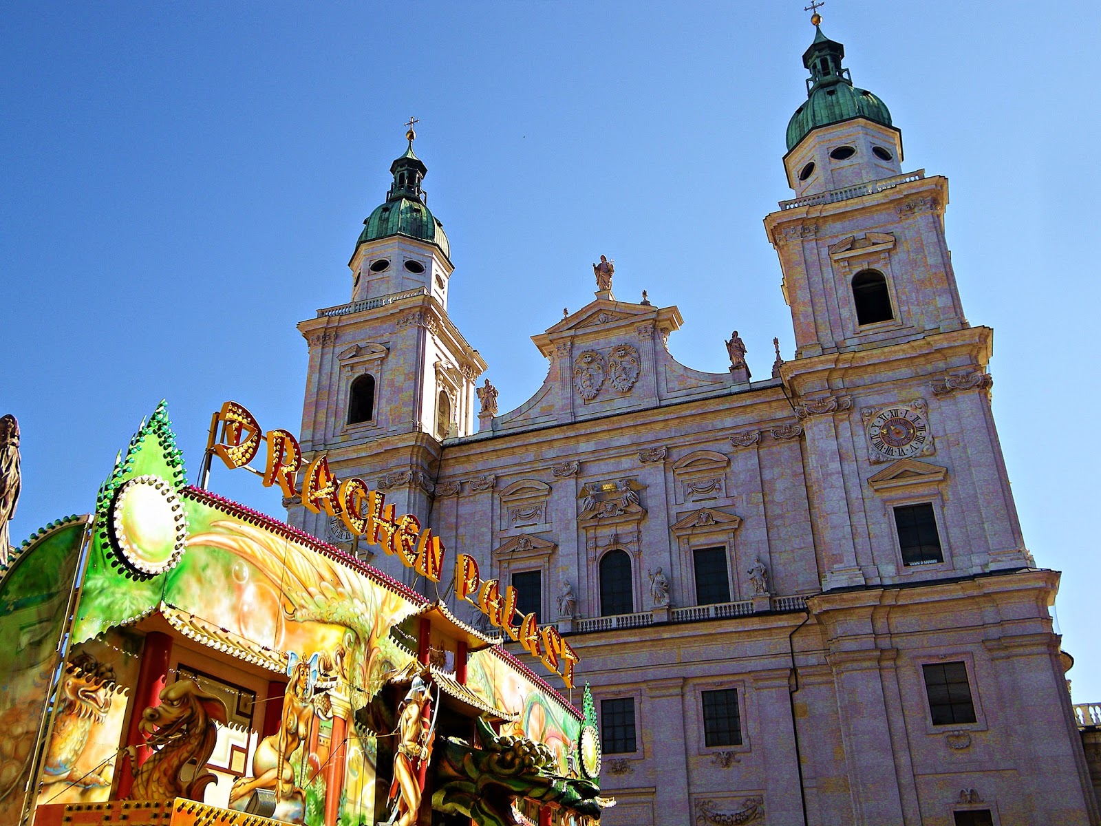 El principal reclamo turístico de Salzburgo es por supuesto su Altstadt, la ciudad alta, internacionalmente reconocida, un casco histórico de un barroco contundente y sólido, cuidado con esmero, lleno de calles empedradas y edificios y palacetes antiguos bien pintados y con recargadas tiendas y restaurantes old-style en sus bajos comerciales. Todo con un punto kitsch.