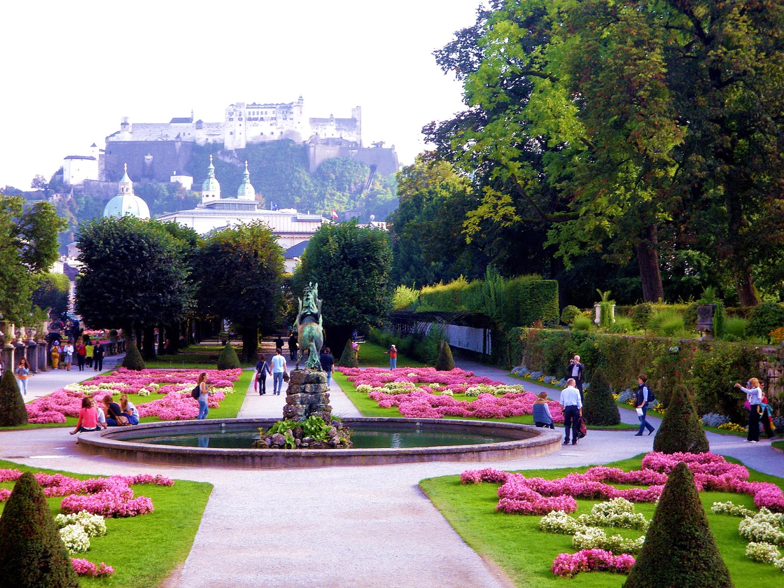 Uno puede perderse también por el palacio de Mirabell y los jardines que le rodean, realmente un páramo bien cuidado, bonito y nostálgico, recuerdo de los tiempos de gloria, donde la gente de alta y rancia alcurnia se dejaba caer por estos lares, disfrutando del aroma de las flores. Hoy en día lo hacen los cientos y miles de turistas que lo visitan atraídos por la recargada belleza del lugar haciendo imposible encontrar un atisbo de tranquilidad en las horas intermedias del día. Pero es que el lugar merece la pena , la entrada es gratis y las perspectivas del jardín hay que reconocer que son bien chulas y el encuadre fotográfico de libro. Normal que vaya tanta gente.