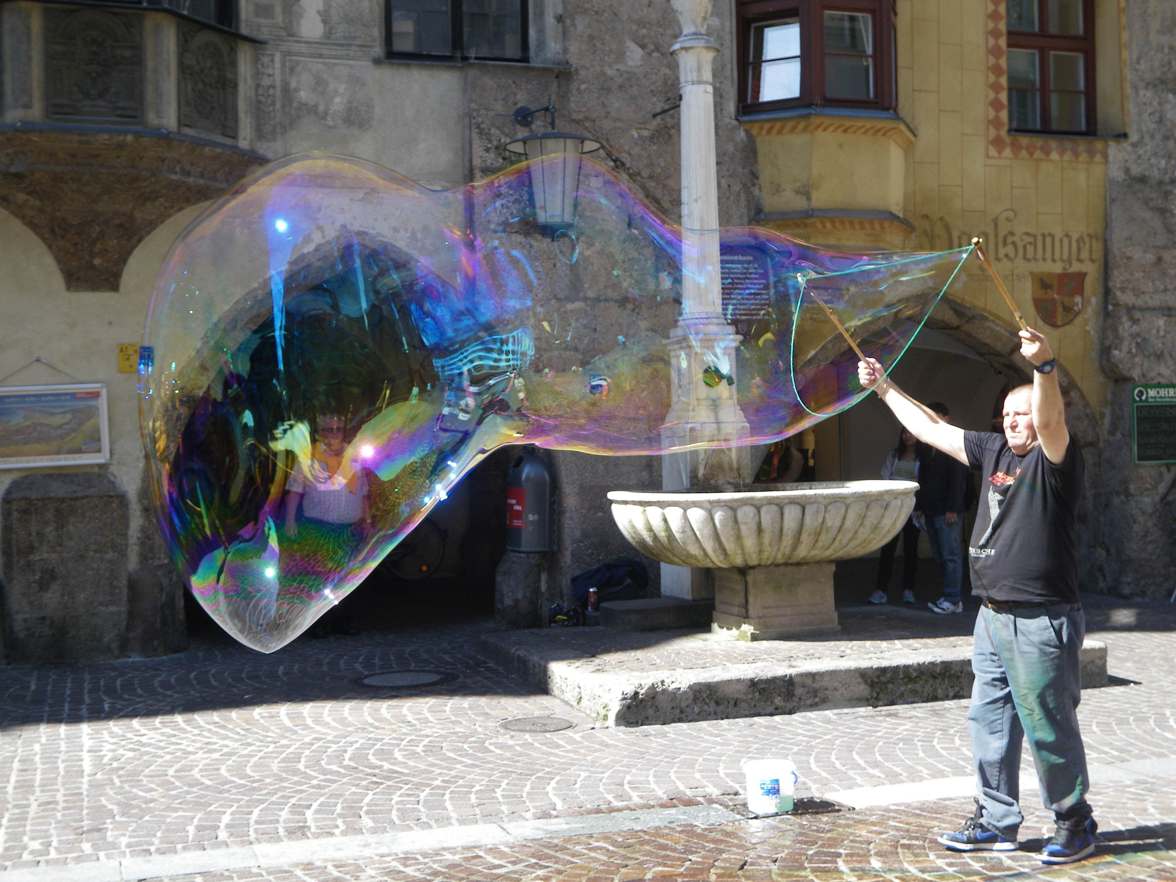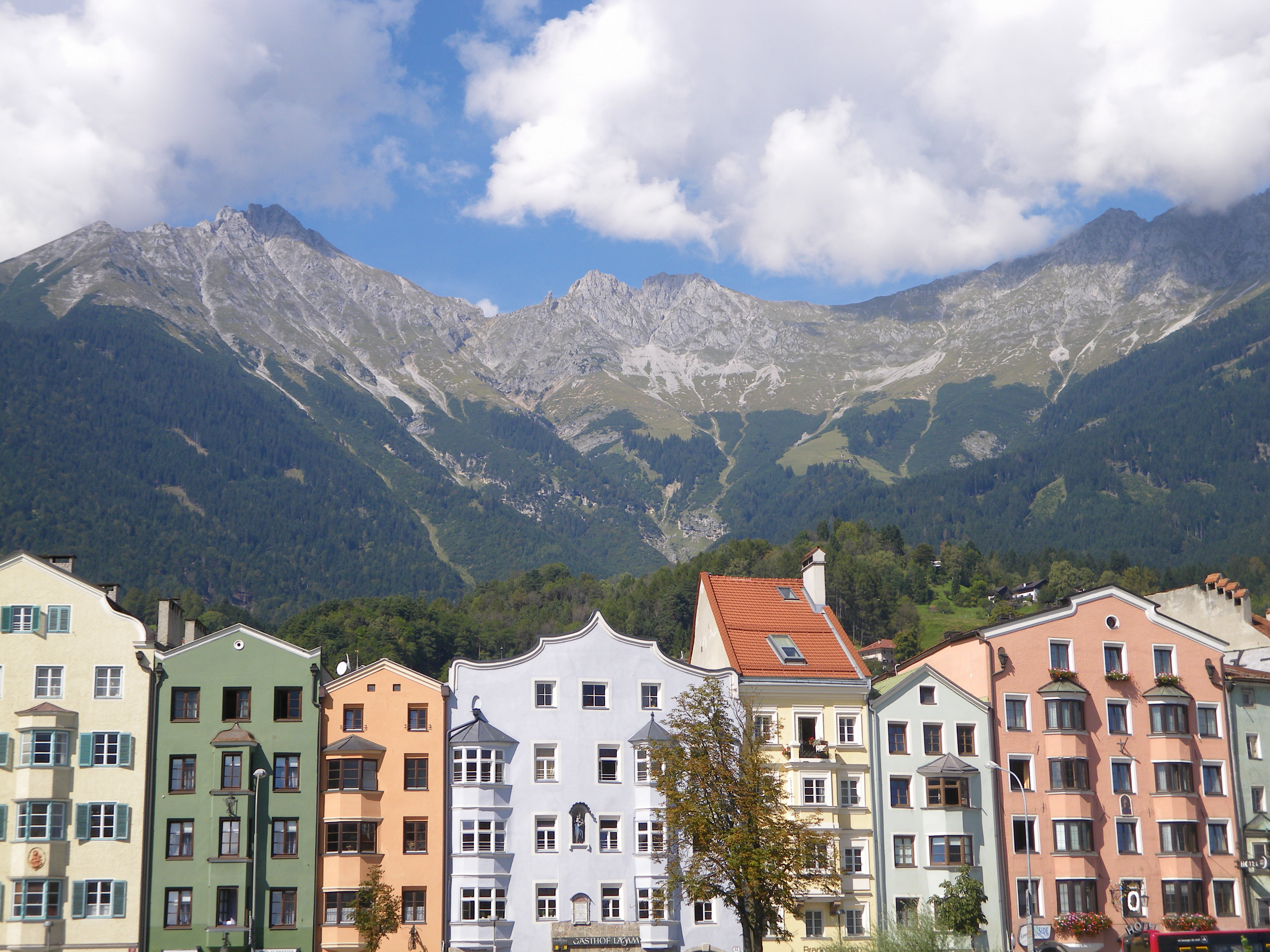 Al llegar descubrimos una ciudad pequeña y recogida (Innsbruck cuenta sólo con 120000 habitantes), pero atestada de turistas. Y es que el casco histórico de Innsbruck es bien bonito, ya no sólo por sus calles empedradas y sus antiguos edificios bien restaurados, si no porque desde cualquier punto de la ciudad se pueden contemplar unas inmensas e impresionantes montañas, que como telón de fondo, adornan cualquier paseo por el corazón de la ciudad.