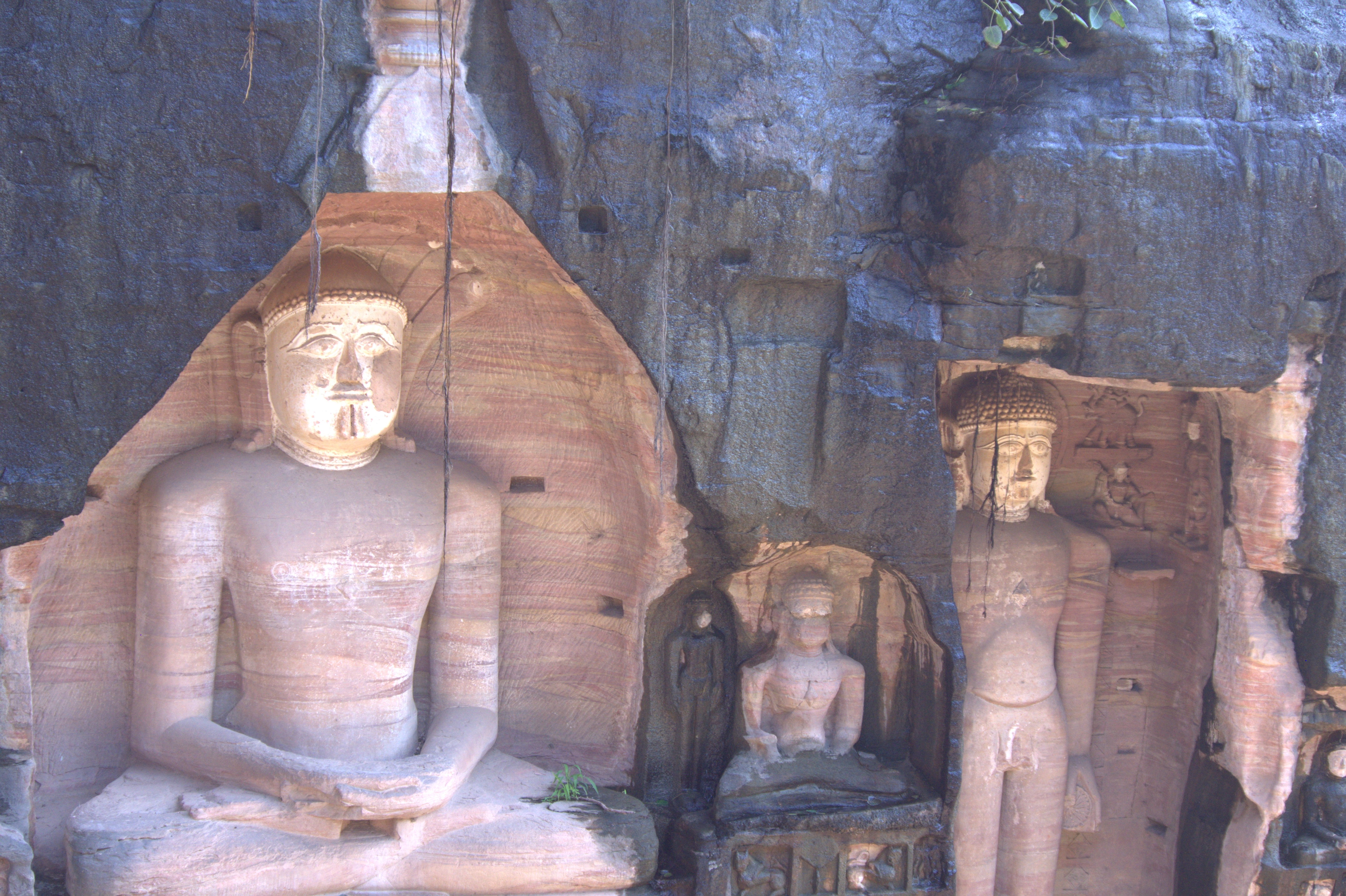 De vuelta al coche, hicimos una parada en la carretera de bajada a la ciudad. Cerca de un centenar de impresionantes y enormes estatuas jainitas atrincheran la carretera (construidas entre los años 1441 y 1474). Excavadas en la roca y atrapadas entre la maleza, el conjunto monumental era impresionante, digno de admiración pero, la verdad, si por algo recordaré siempre a Gwalior fue por aquel niño y sus chistes sobre mi pelo, su asombrosa capacidad para aprender idiomas, y su teléfono móvil, viejo y medio roto, que nos enseñó orgulloso varias veces durante nuestro encuentro.